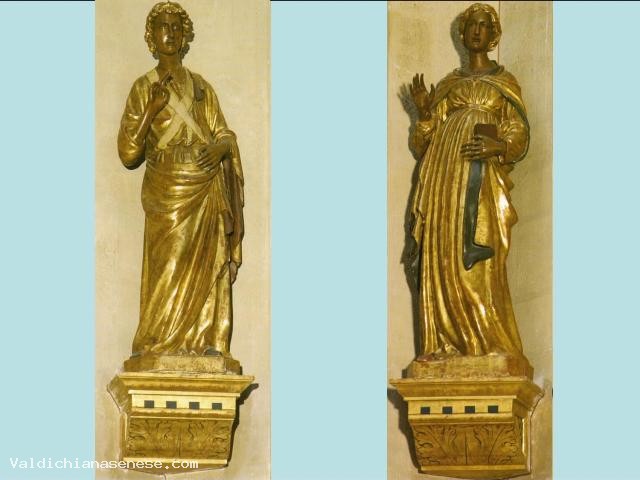 le sculture in legno intagliato, policromo e dorato della Vergine annunciata e dell’Arcangelo Gabriele, opere di Francesco di Valdambrino, che le eseguì nei primi anni del XV secolo, si trovano Lungo la navata, nei primi due pilastri che sostengono la volta del Duomo Poliziano.