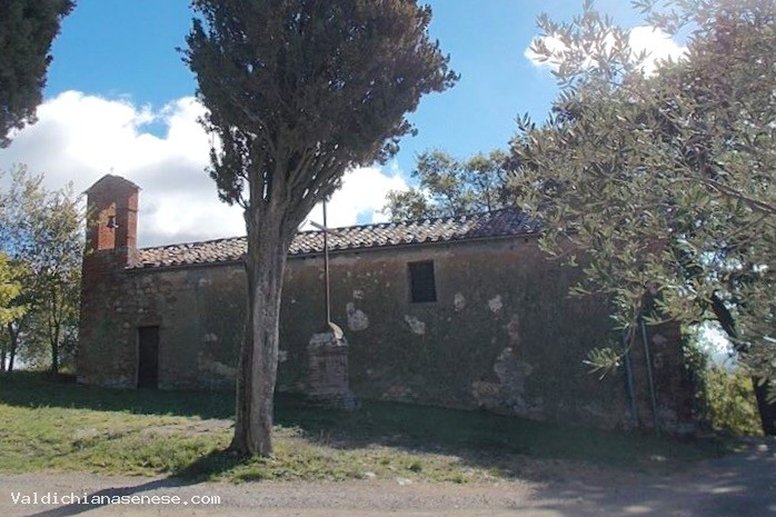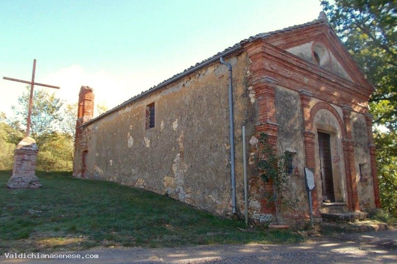 Subito fuori dal paese, solitaria in un dolce pianoro, si trova la cappella della Madonna della Rosa. La dedica ricorda il casuale ritrovamento dell'immagine miracolosa della Madonna della Rosa, da parte di una bambina nata a Castelmuzio nel 1648, Apollonia Generali, fattasi poi suora oblata di san Domenico con il nome di Rosa Maria Generali. Qui soleva recarsi ogni giorno in preghiera con una rosa fiorita. Qui maturò la sua conversione che la portò nel convento domenicano del Paradiso in Siena del quale esiste ancora la chiesa, oggi sede della contrada del Drago.