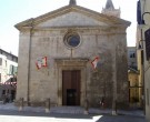 Presenta una facciata rinascimentale e pianta a croce latina. Sugli altari laterali, il "Battesimo di Gesù" e l' "Ingresso di Gesù a Gerusalemme", di scuola senese del sec. XVIII.
