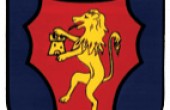 "di rosso al leone rampante di giallo tenente con le zampe anteriori una torre di bianco murata e finestrata di nero, merlata alla guelfa".