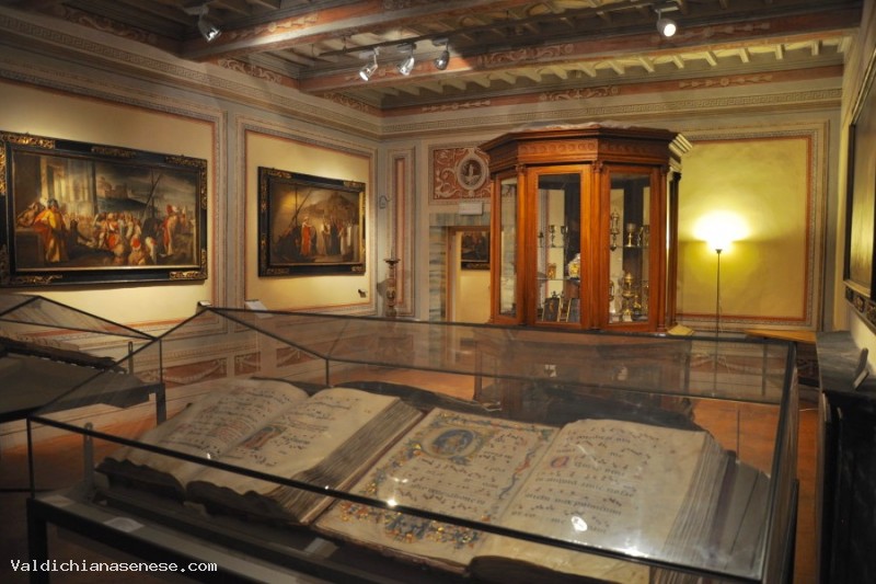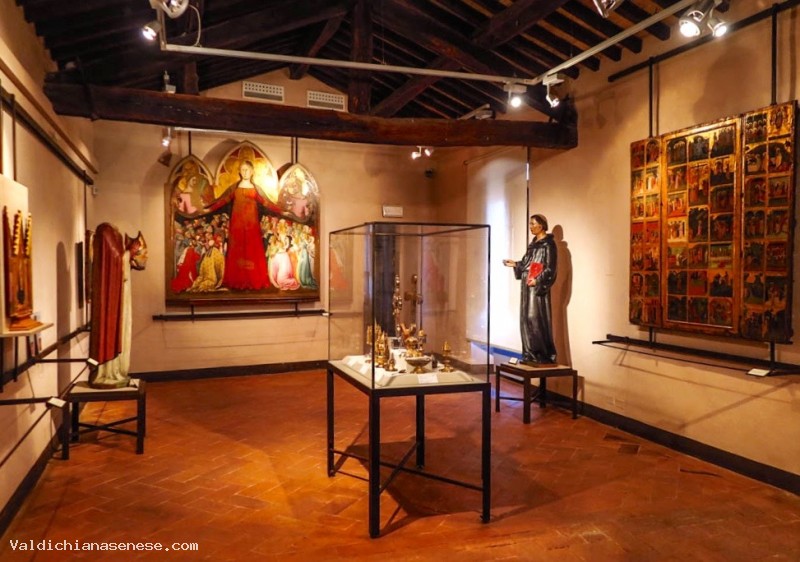 The Museum of the Cathedral of Pienza hosts several pieces that testify XIIIth and XIVth century Sienese devotional art . It also hosts a rich collection of archeological findings coming from diggings executed in the area. The set up and the museum route follow thematic and chronological standards. Among the art works of the archeological section , there are several Etruscan and Roman objects for daily use. There are, among them, cinerary urns and Etruscan vases ( IInd century B.C.). The section dedicated to Sacred Art and in particular to liturgical ornaments, outfits and canonicals, follows the archeological section. There are chalices, monstrances, crosses, and a silver reliquary called Peace by Pietro d’ Antoni. Among these, an episcopal miter and Pius II’s Staff. He was the rich prelate , member of the Piccolomini family, Lords of Pienza, that became pope in 1458. Pius II’s Cope is quite remarkable: it’s a cape realized with precious material and decorated with golden thread, representing the Stories of Saint Catherine from Alexandria and the twelve Apostles. XVth and XVIth century Flemish tapestries are also present in the different sections. The painting section hosts XIVth century paintings representing religious subjects. The Madonna of Mercy is attributed to Bartolo di Fredi, whereas a Madonna with Child and Saints is attributed to Sassetta. Other artworks that have particular value are a XIVth century altar piece with miniatures , representing Stories of the life of Christ and a XIVth century triptych representing the Madonna with Child and Saints and sacred scenes.