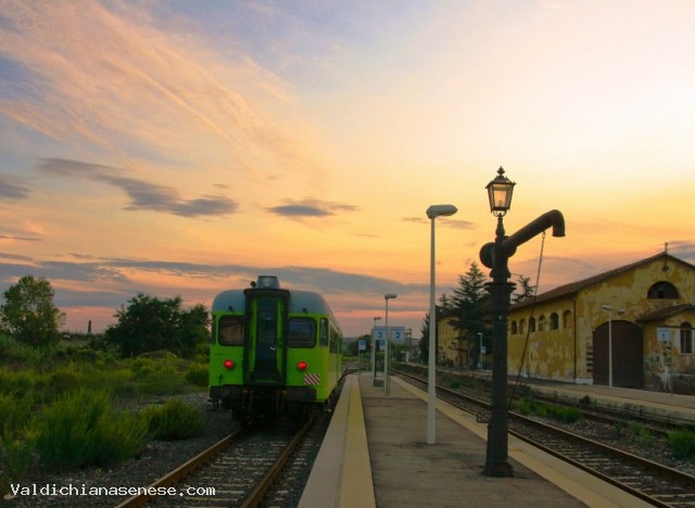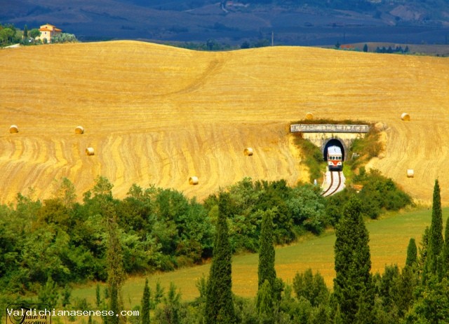 The railway winds along the valleys of the River Ombrone and its tributaries: the Arbia and Orcia, one of the most beautiful areas of Tuscany and of great natural, historical and scenic. The train runs through the valley of the fact the famous Crete Senesi and the Val d'Orcia and then lick the territory of Montalcino, famous for its Brunello wine in Siena and return along the banks of the Ombrone and Arbia. In this last section, the train touches historical places related to the route of the Via Francigena Buonconvento Lucignano d'Arbia, the Grange of Cuna and others of lesser importance.