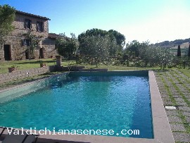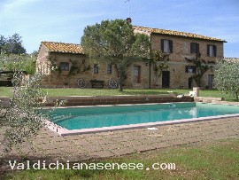 Our farm-house goes back to the thirties and is made of local stone and the brick. It is situated between Pienza and Monticchiello in the Natural Artistic and Cultural Park of Valdorcia, recently part of UNESCO, world heritage of Humanity. We restored our house bit by bit and we have given the farm a special quality by producing cereal (with the certification Agriqualità) oil, pasta, saffron and jams. The work we carry out, both from an agricoltural and receptive point of veiw is done personally and we try to keep local traditions alive. Our guests can stay in an apartment (La Loggia) made up of a double bedroom, a bathroom, a living room with fireplace and a kitchen corner; or with two double bedrooms: La Vigna and L’Olivo, both with private entrances but with a common living area. The house is surrounded by a large garden with a ping-pong table, football area, basket-ball net and a swimming pool.