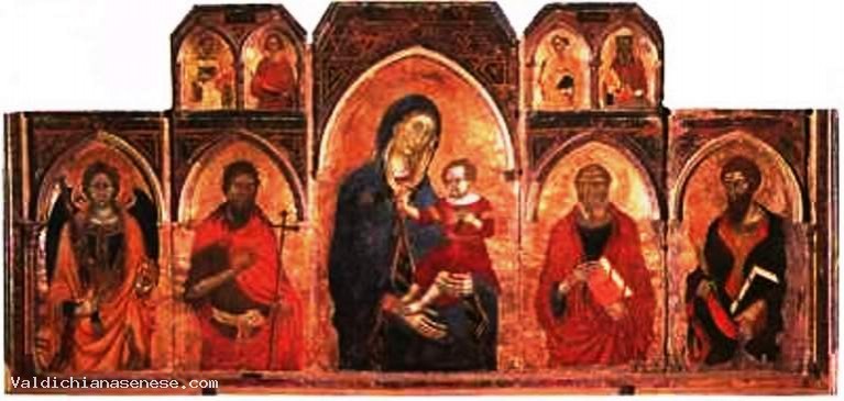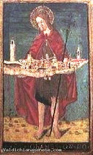 It was built during the first half of the XIII century on top of a previous hexagonal construction . It presents evidence of transition from the Romanesque to the Gothic style, especially on the facade. The beautiful portal is strongly splayed , with small bundled pillars surmounted by vegetable capitals and in the inner surface by a cord splay. The interior was restored in a neo classical style in 1817, following Luigi De Vegni ‘s project. Inside there’s an Etruscan urn, used again in 1503 to preserve the ashes of Beato Paolo Salimbeni. In the chapel, on the left, there’s a XVI century “Presepio” (Nativity); in the presbytery, a “Cruxifiction” dated 1300 and a wooden sculpture with “Christ Dead” by Giuseppe Paleari (1783).