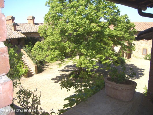 From the courtyard staircases lead to each apartment: Beco, Bersagliere, Fonte, Ronda, Tiglio, Vespa: these were the living quarters of the different peasant families, while the ground floor was used to keep livestock and store grain. The apartments have been carefully restored to maintain the old terracotta floors and wooden beams. Each one reflects the combined charm of antique furniture and modern fittings. The walls are washed in a light terracotta colour; an open fireplace makes each house warm and welcoming.