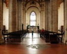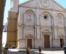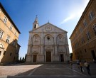 It was built by Rossellino in 1459. Dedicated to the Assumption, it was constructed on the ruins of the ancient Romanesque parish of Saint Mary. In order to have a large nave and a fairly large square, the apsis was anchored to the back of the hill, but not firmly enough to render it resistant on the unstable damp ground . As a matter of fact the restoring works on the sprone of the building that looks out on the countryside, have been very difficult and they’ve taken a long time. The exterior, clearly influenced by the architect Alberti, has a travertine facade, opened by three portals and divided in three sections by large pilasters flanked by two files of columns with a rose window and crowned by a tympanum with the code of arms of Pius II in the center. The bright interior, made up of three naves, similar in height, that Pius II had admired during his voyages in Northern Europe, links itself to Gothic motifs with the long and slender bundle pillars surmounted by tall imposts, on which stand the Gothic vaults. The ray apsis is lighted by the round windows, ornamented with thorny arabesque motifs. The bell tower with an octagonal plan, stands over the ancient crypt, it juts out on the left of the church and protrudes itself towards the sky ending with a beautiful gable. Among the artworks inside the Cathedral, we’d like to point out some altar panels, all similar in size and realized especially for the Cathedral , between 1461 and 1463, by some of the major Sienese artists of the time. The crypt houses sculpture fragments from the pre existing Romanesque Church of Saint Mary and a baptismal font by Rossellino’s shop.