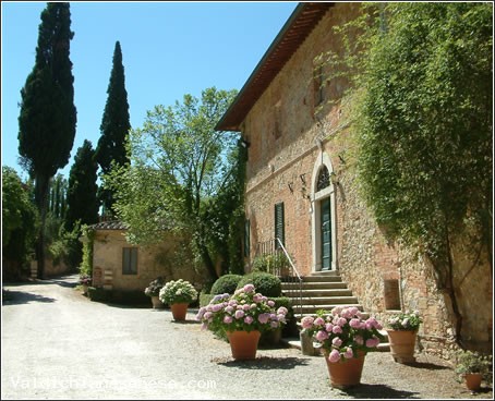 La cantina è di grande suggestione: inizia in un eremo medievale, attraversa il sotterraneo della villa cinquecentesca e poi sale fino al sotto tetto del Vin Santo. La tinaia ha attrezzature di ultima generazione ed un panorama mozzafiato sulle Crete Senesi.