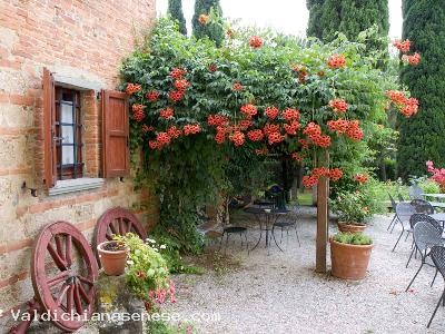 La locanda è circondata da un ampio cortile, una bella pineta, tante piante fiorite ed un oliveto: immersa tra gli olivi, in un tranquillo angolo del giardino, si trova la nostra piscina all’aperto.
