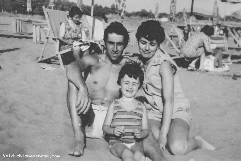 Guido Vaselli e Rosanna Burroni al mare con la figlia Patrizia.