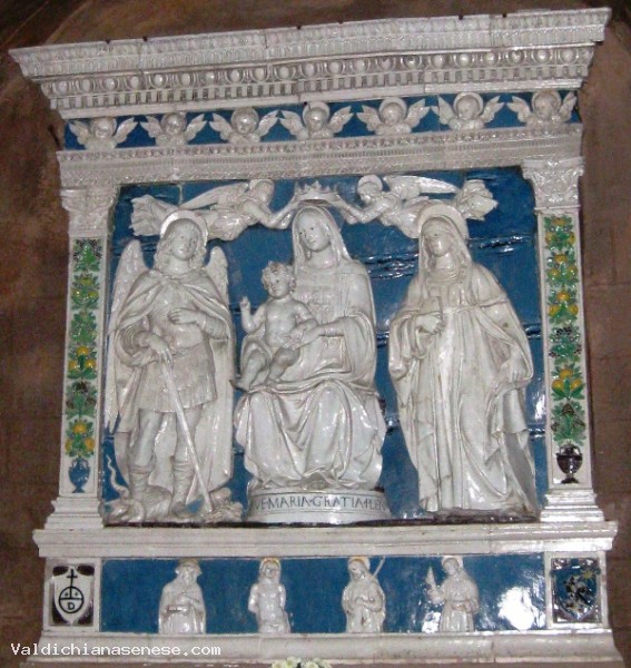 In the center is the Madonna and Child raffighurata breccia, in the middle of St. Michael and St. Catherine of Alexandria.