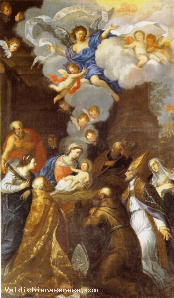 Il dipinto, che venne eseguita da Annibale Mazzuoli nel 1692, raffigura la Natività di Cristo .