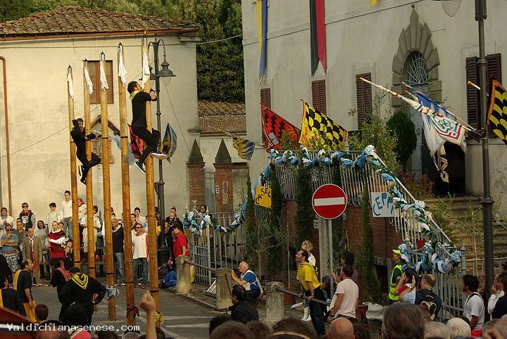 La prima parte consiste nella corsa con un barellino con anfora soprastante, portato da due concorrenti ; la seconda parte consiste, invece, nella scalata di un "PALO" di legno unto di 5 metri montato in corrispondenza del castello.