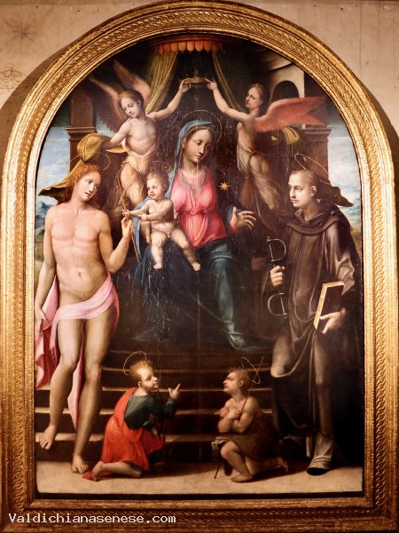 Despite the Beccafumian model of the niche, the San Quirico d'Orcia panel should be considered one of the works that introduce the period in which Riccio, now established in Siena, took over from Sodoma in 1542.