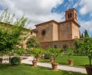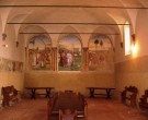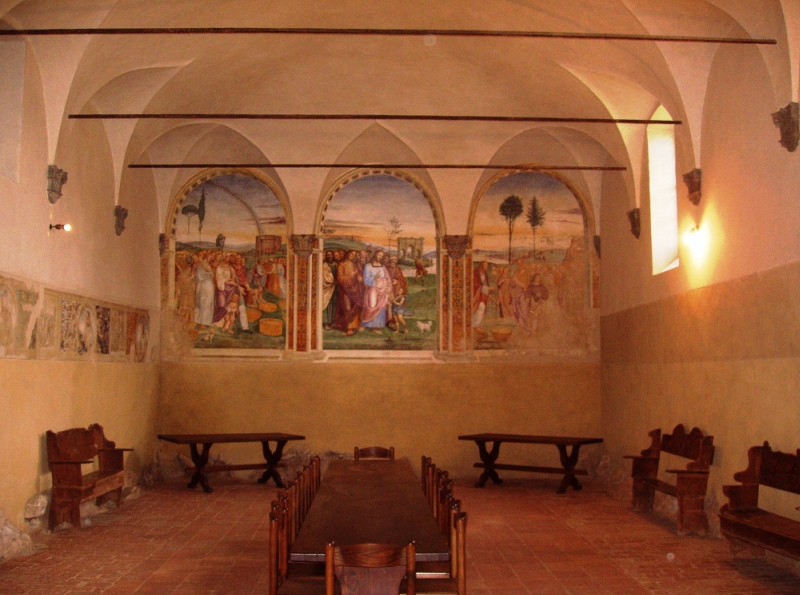 The monastery of Saint Anne in Camprena is a sacred building, located in Camprena, in the township of Pienza, in the province of Siena,in the diocese of Montepulciano-Chiusi-Pienza. It was founded in 1324-1334 by Bernard Tolomei as a hermitage linked to the Benedictine order of the Congregation of Monte Oliveto. It was radically modified between the end of the XVth century and the beginning of the XVIth century and , later on, at the end of the XVIIIth century and beginning XIX th century, it underwent further modifications. The construction of the church was completed in 1517. The frescoes in the dining hall by Sodoma are quite important. They were realized between 1502 and 1503. They include the following : The Approval of Mount Oliveto’s rule created by Tolomei , by the bishop of Arezzo Guido Tarlati; The Deposition; A Madonna with Child, Saint Anne and two monks; three scenes from the Multiplication of Bread; and a grisaille decoration with Stories of the Life of Saint Anne, surrounded by “ grotesque” decorations.