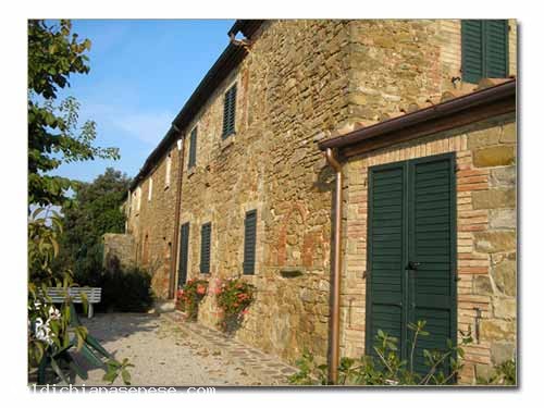 Among the beautiful hills which divide the area of Val di Chiana Aretina from the Senese area it's possible to discover very fine agritourisms and farmhouses for holidays: Poggio al Vento is one of these. Poggio al Vento is an old farmhouse composed of a country house divided into three nice apartments and two haylofts renovated and become two nice little houses. In front of the apartments we can find a large green relax space surrounded by Cypresses and Olive trees and a coin with barbecue and a beautiful swimming-pool. For its central position it's easy to reach a lot of important and characteristic places of this area as Siena, Arezzo, Florence and other villages in the heart of the Crete Senesi. We suggest the wine tasting and trips to Rapolano,famous for its Thermal Baths, the abbaye of Monte Oliveto Maggiore and so on.