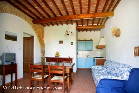 The farm house lies on a “poggio”, a hillock called “Salto” overlooking the typical Tuscan countryside, delicately rolling hills with their splendid colours which change according to the season.