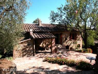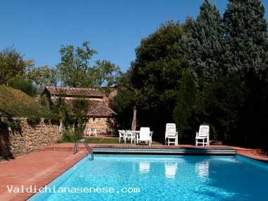 Il meleto è uno stupendo podere Toscano, completamente appartato, tradizionale, immerso nella bella campagna delle colline Senesi e vicino alla regione del Chianti, a Siena, a Firenze e ad Arezzo. Costruito più di 200 anni fa con pietra del luogo, il podere è stato restaurato, con attenzione e sensibilità, per dotarsi degli standard di vita moderni, mantenendo al contempo l'atmosfera rustica del passato. Il podere è appartenuto, per un certo periodo, a Lea Massari, l'attrice cinematografica degli anni '60. Le travi in legno a vista originali, i pavimenti in cotto, le finestre e gli infissi alla francese sono parte integrante della personalità della casa. Il Meleto è dotato di un arredo di pregio e confortevole, con mobili rustici e d'epoca. La casa si trova al centro dei suoi 5 ettari di terreno, il quale comprende giardini rigogliosi, olivi, piante da frutto, vigne e boschi perfetti per lunghe passeggiate. Sono disponibili una ampia piscina (16mX8mX2.5m) ed un solarium, ad uso esclusivo degli ospiti. Un custode si occupa della piscina e del giardino.