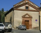 The plaster facade emphasizes the brick decorations, highlighted by three triangular spandrels, from which spring out from the lower part two segments that terminate with volutes. The interior is made up of a single space with a semi circular arch on the back wall, supported by two columns with Ionic capitals; the choir behind the arch follows its design with a barrel vault. Among the many paintings, the following stand out : “ The Annunciation “ by Santi di Tito (XVIth century), “The Ressurection” by XVIIth century Florentine School, “ The Madonna of the Rosary with Saints” attributed to Rutilio Manetti (XVIIth century), “The Grieving Madonna with Saints” by the sphere of Ventura Salimbeni (XVIIth century) and a good reproduction of “The Madonna of the Cup” by Correggio, realized at the end of the XVIIth century.