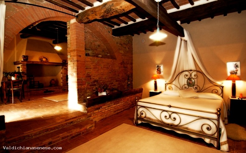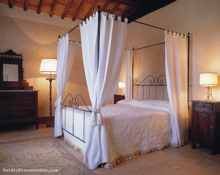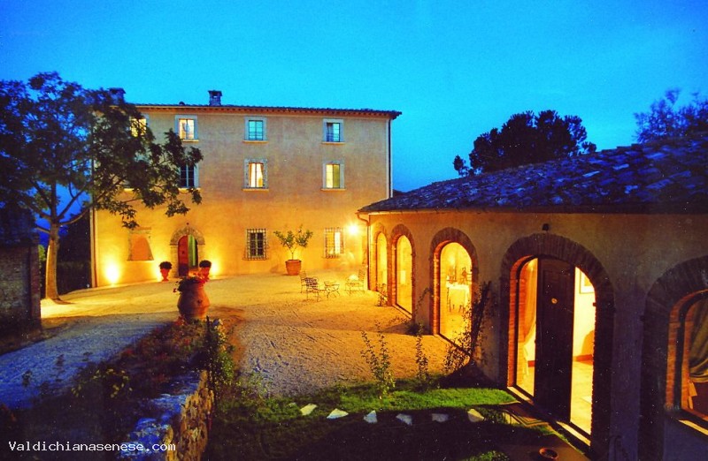 With origins dating back to the early Middle Ages, the Villa is located a short way from the splendid 16th-century pearl, Montepulciano, and a few kilometres from the most beautiful towns in the province of Siena: Pienza, Cortona, Montefollonico, Monticchiello and Montalcino. Over the centuries, the families who owned the villa transformed it into their country residence, the frescoes, coats of arms and paintings all bearing witness to them. The spacious rooms furnished with antique furniture take their names from the panorama that you can enjoy from the windows: Montepulciano, Cortona and Montefollonico; as well as from some architectural details: the chimney, capitals, balconies and well; or the surrounding countryside with his vineyards, walnut trees and cypresses. The Italian garden with its elegance and geometry opens up before the small church, a wonderful piece in the architectural mosaic. The swimming pool with Jacuzzi is immersed in the olive grove with a view looking over the Tuscan countryside. Guests can make use of the hut, chimney room and cellar for reading and tasting the famous "Tuscan Red Wines".
