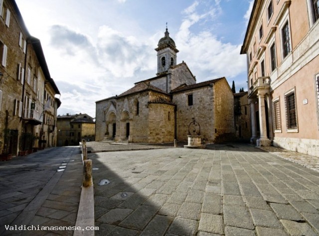Dal centro storico di San Quirico imbocchiamo la strada sterrata che porta verso Ripa d'Orcia e il vecchio borgo di Vignoni. Dopo 2 km di salita si gira a sinistra per Vignoni dove inizia la ripida discesa nel bosco per Bagno Vignoni, piccolo borgo famoso per la sue piscine termali e la piazza d'acqua. Da Bagno Vignoni si scende fino alla S.S. 2 dove si gira a sinistra verso San Quirico per poi girare a destra al primo incrocio, in direzione Spedaletto che si trova dopo 4 km di pianura. Poco più avanti si gira sinistra seguendo le indicazioni per Pienza. La strada comincia subito a salire dolcemente verso la città rinascimentale che merita una visita approfondita. Da qui si prosegu sulla strada di crinale che in poco più di 9 km collega direttamente Pienza a San Quirico d'Orcia.