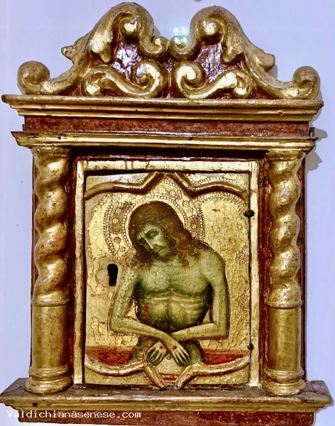 Nella sua forma attuale, questo piccolo pannello conserva una cornice intagliata di stile barocco che rsulta alquanto anacronistico.