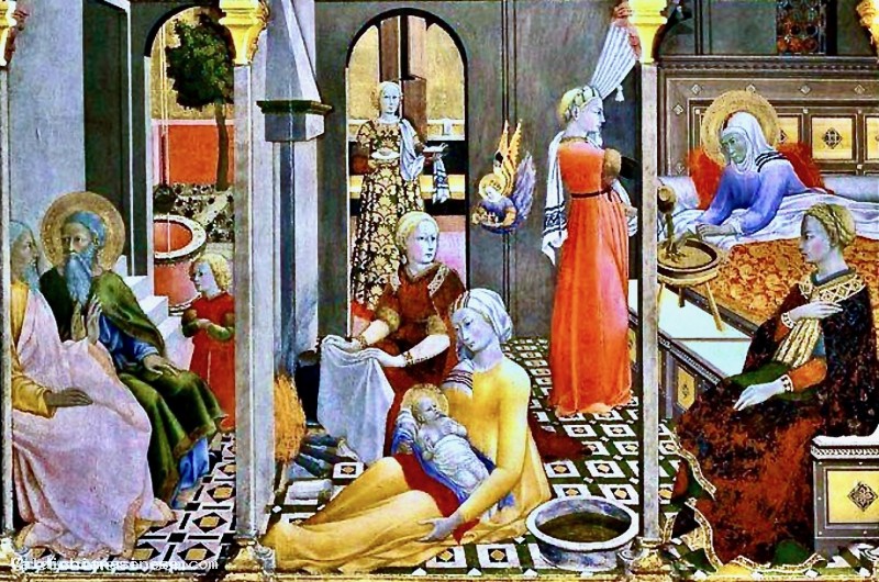 In questo polittico della “Natività della Vergine” è rappresentato un ambiente domestico della Siena di allora, con una buona dose di fantasia che rende la realtà quotidiana ancora più fiabesca. Una sorta di “Buon Governo” della famiglia, dove tutto è documentato dettagliatamente e sta esattamente al suo posto: ricchi, poveri, servi, infanti e visitanti.