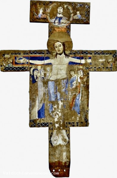 Questa antichissima Croce dipinta ci è giunta in uno pessimo stato di conservazione  e con ampie lacune, cheil recente restauro ha cercato di recuperare, per quanto possibile.