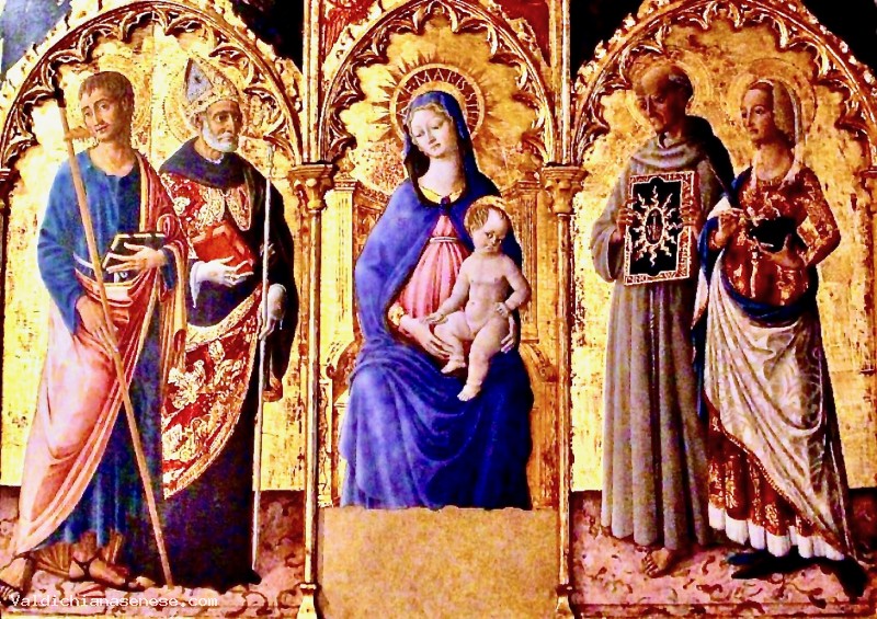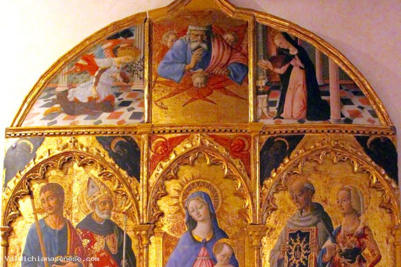La Madonna in trono col Bambino, al centro del trittico, è ancora oggi venerata come Madonna delle Grazie. Essa era in origine dotata di una predella con le Storie di Santa Caterina d'Alessandria e quattro Santi.