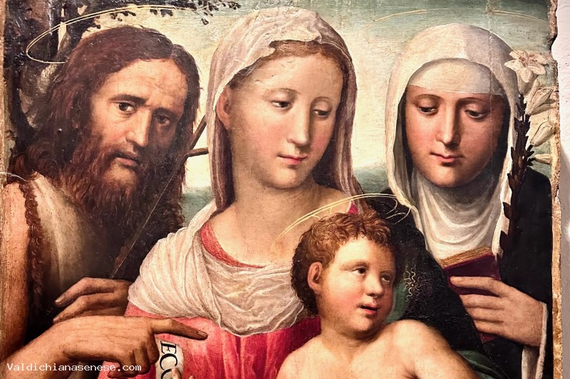 In questa tavola, proveniente da San giovanni d'Asso, siamo certamente lontani dall'enfasi classicistica e dalla grandiosità riscontrata negli affreschi della cappella dei Quattro Coronati nella Cattedrale di Siena, che rivelano la familiarità artistica del Riccio con il Sodoma e Baldassarre Peruzzi. in questo caso l'esecuzione pittorica è povera e stanca, specialmente se la si raffronta con la coeva tavola della Sacra Famiglia, conservata alla Pinacoteca Nazionale di Siena.