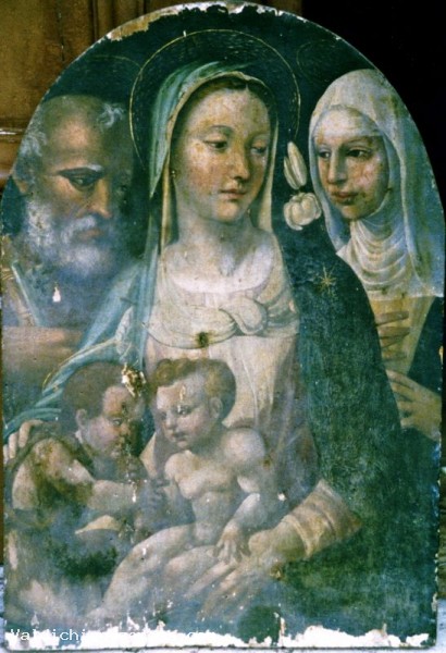 La tavola realizzata per un madonnino presente nel palazzo al n°62 di Corso Matteotti ad Asciano è stata venduta negli anni '60 del secolo scorso a un facoltoso collezionista fiorentino. In questa opera di piccole dimensioni ma di pregevole fattura, è rappresentata la sacra Famiglia in compagnia di Santa Caterina e San Giovannino. Questo tema risulta piuttosto ricorrente, fra le opere del Riccio, anche se con piccole variazioni apportate fra le varie opere.