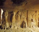 Le pareti interne venneroo riutilizzate e modificate per ricavarne più vani, sulle pareti dei quali vengono scolpiti volti, figure umane e animali.