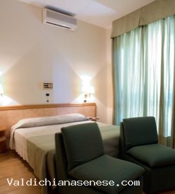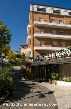 L'Hotel Santa Chiara, modernissimo, situato in zona panoramica con vista sui laghi Trasimeno, di Chiusi e di Montepulciano, è immerso nella pace e nel verde ed allo stesso tempo ad un passo dal centro e dagli stabilimenti termali. Le 108 camere ampie e silenziose, tutte con bagno, balcone, aria condizionata, TV, radio, frigo-bar, telefono con linea esterna diretta e cassaforte, offrono ai nostri ospiti un comfort unico nella quiete più assoluta.