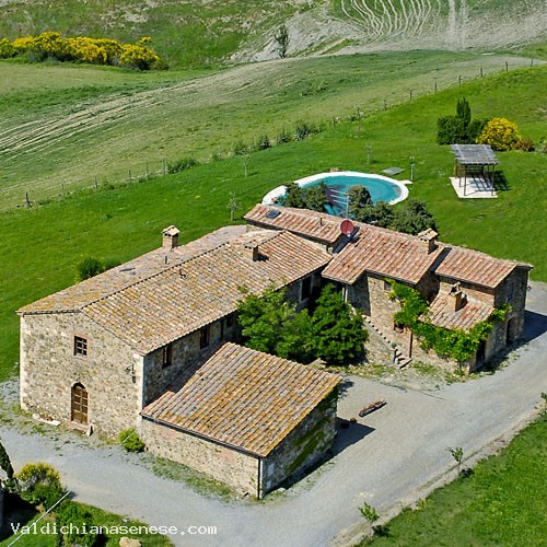 Antico casale in pietra, interamente ristrutturato, posto nel cuore della Val d'Orcia, in una posizione particolarmente panoramica da cui si domina a 360° sulle colline e sulle valli dell’Orcia.