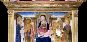 Il dipinto di Giovanni di Paolo che raffigura la Madonna col Bambino, San Bernardino, Sant...