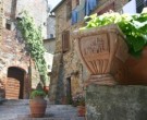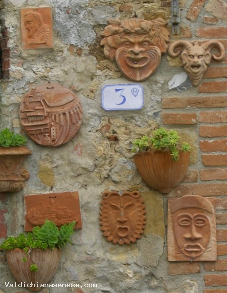 Il paese è caratterizzato dall'uso ornamentale degli originali manufatti in terracotta , tutt'ora prodotti dagli artigiani locali. Bellissima la vista che dal borgo si gode sul paesaggio di boschi , vigne , campi e filari di cipressi.