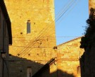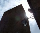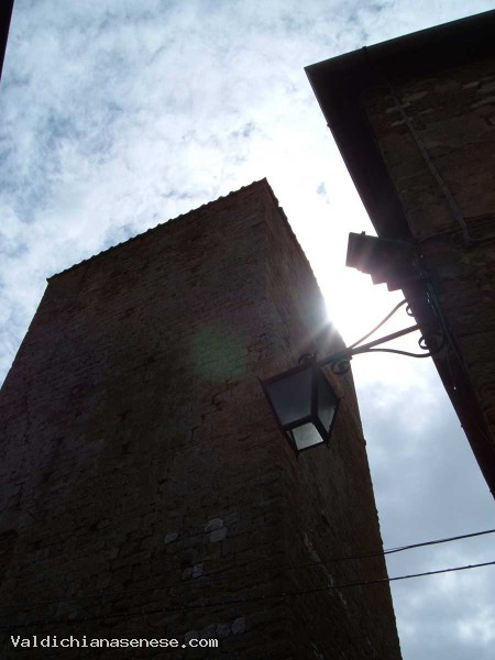 La strada a Spirale termina alla sommità del borgo, davanti alla Torre Civica, costruita con grossi blocchi di tufo squadrati, e al Cassero del XII° secolo, abitazione dei Cacciaconti.