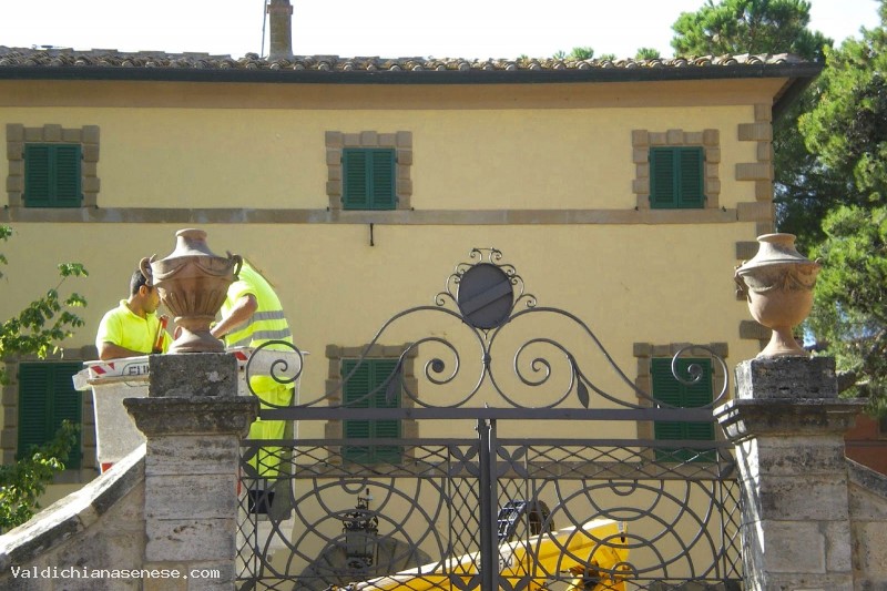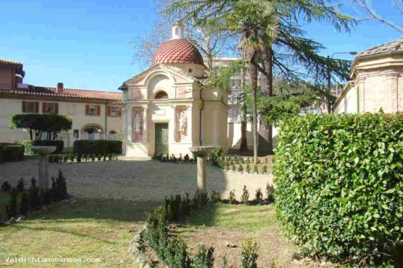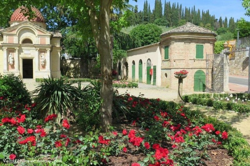 Villa Simoneschi, antico edificio padronale a tre piani che risale al 1830 circa, è situata nelle immediate vicinanze del Centro Storico di Chianciano Terme. La villa, alla quale si accede da un monumentale cancello ubicato su Via Dante, si trova al centro di un bel giardino ad aiuole fiorite in particolare rose ad alberello e piante piuttosto rare come: Hibiscus Siriacus (Ibisco), Lippia Citriodora (Lippia), Osmanthus Fragrans (Olea fragrans), Ruscus Hipoglossum (Pungitopo varietà) e Paeonia Officinalis (Peonia). Alla destra per chi accede si trova una Cappella neoclassica, a fianco come un monumentale campanile spicca un Cedrus Libani di notevoli dimensioni, dal lato opposto, è situata una fontana in pietra con acqua sorgiva, scendendo alcuni gradini si apre la zona più ombrosa e riservata del parco, un giardino formale con piante ad alto fusto. Il piazzale a mezzogiorno della villa è dominato dalla presenza di una bella fontana a pila al centro di uno specchio d'acqua dagli eleganti bordi polilobati, cui fa contorno una pavimentazione in lastre di pietra locale sul cui perimetro sono installate quattro singolari panchine a disegno pure in pietra. In fondo al piazzale, verso il Monte di Cetona e la sottostante vallata, si affaccia un'imponente terrazza panoramica, munita di un parapetto classicheggiante con balaustrini in pietra, al di sotto e a lato della quale si trovano rispettivamente la ex-limonaia e la Casina del Giardiniere. Il giardino di Villa Simoneschi ospita oltre trenta qualità di piante, arbusti, siepi ed aiuole delimitate da pietre; tra gli alberi ad alto fusto spiccano alcuni: Acer Negundo (Acero di Virginia), Taxus Baccata (Tasso), Cotinus Coggygria (Albero parrucca) e Prunus Cerasifera (Prunus).